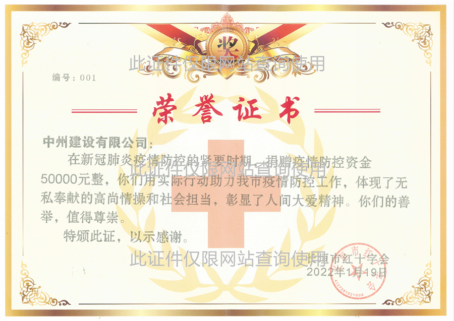 新冠肺炎捐贈5萬元榮譽(yù)證書